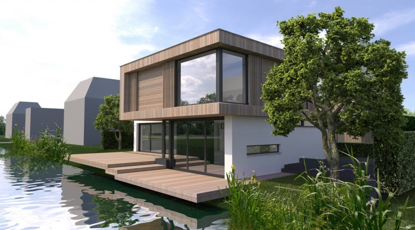 De huizen staan naast elkaar aan de Buiksloterweg. De linker wordt helemaal van hout en de rechter een combinatie van hout en baksteen. Het baksteen wordt in een zelfde soort olie gezet als sommige van de Amsterdamse 17e-eeuwse grachtenpanden.