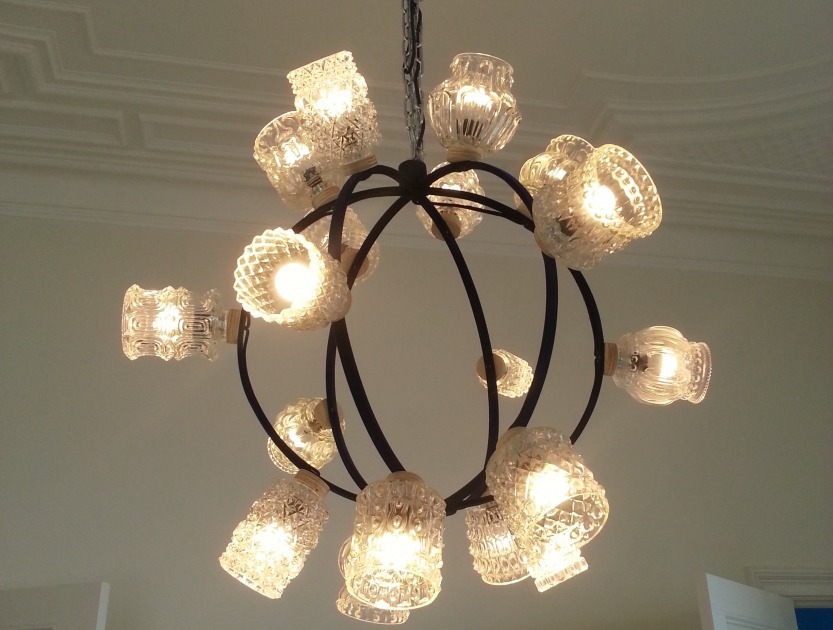 Wij hebbenKwink voorgesteld om door Laura de Monchy een aantal kroonluchters, lampen en porseleinen objecten te laten maken die aansloten bij het thema van de inrichting ‘something old, something new, something borrowed, something blue’